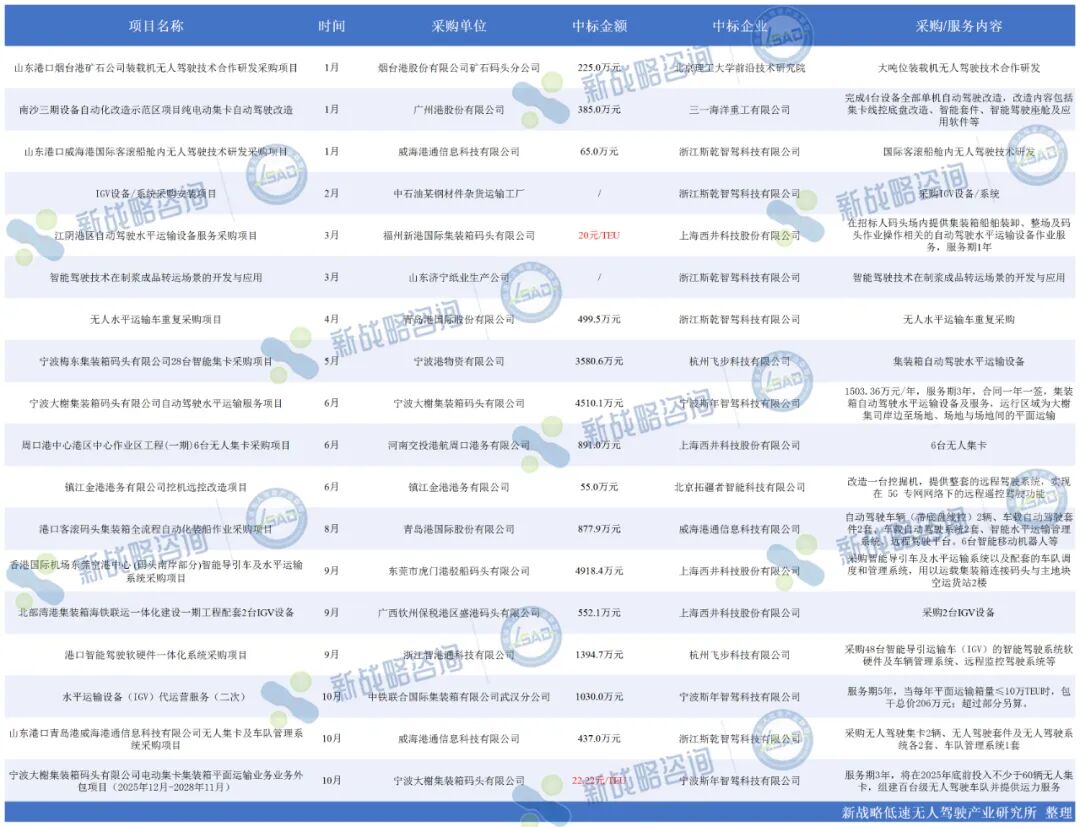 2025年国内港口无人驾驶中标项目汇总(根据公开信息整理,未完善之处请指正)