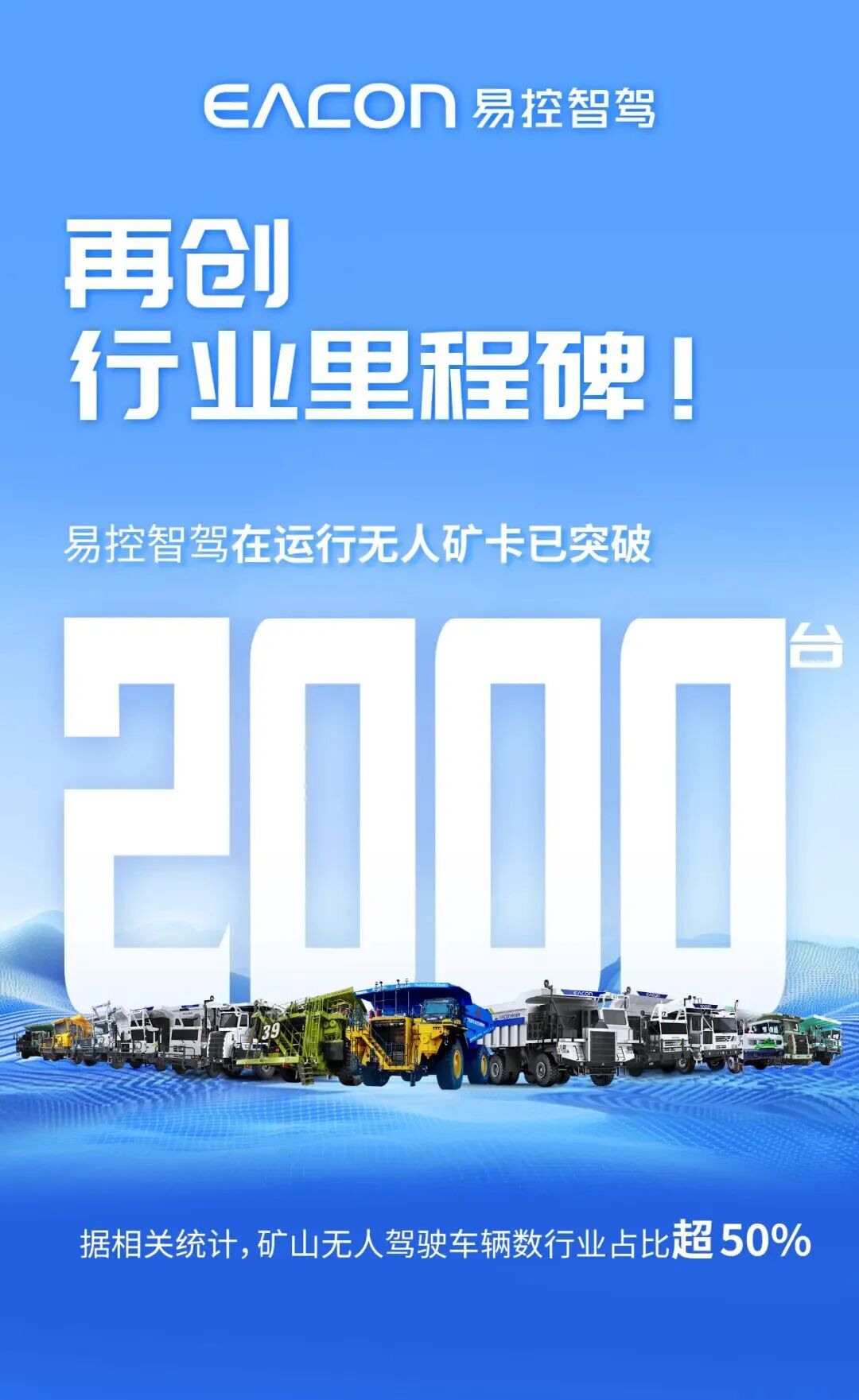 9月19日,易控智驾宣布公司在运行无人矿卡已突破2000台!据相关统计,矿山无人驾驶车辆数行业占比超50%。