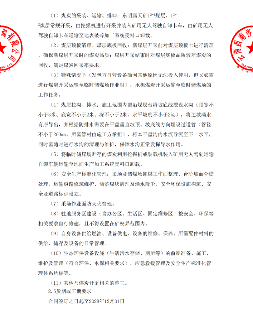 2026-2028年度东明露天矿煤炭开采及倒运工程(无人驾驶运输)项目招标范围